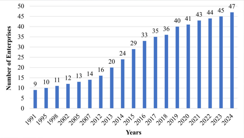 • Figure 1: Dynamics of changes in the number of enterprises (1991: 9 to 2024: 47)